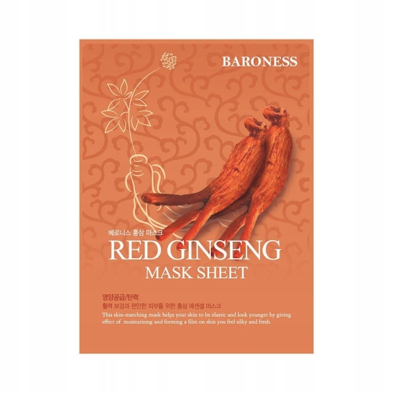 Maska w płachcie Baroness Red Ginseng doskonale dopasowuje się do twarzy, dzięki czemu po użyciu skóra staje się bardziej elastyczna i wygląda zdrowo. Ekstrakt z czerwonego żeń-szenia wygładza i ujędrnia skórę oraz redukuje oznaki zmęczenia i starzenia.