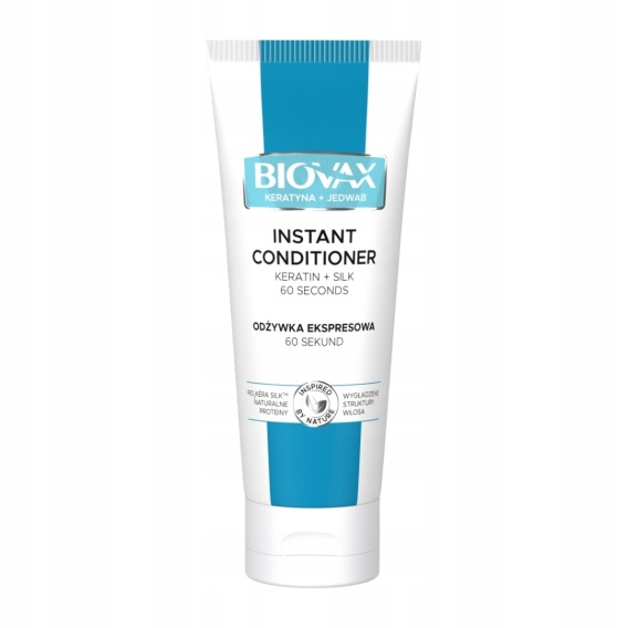 BIOVAX Odżywka Ekspresowa 7w1 Beauty Benefit z serii Keratyna + Jedwab, dzięki zawartości zespołu naturalnych białek Pro2Kera Silk już po upływie 60 sekund zapewnia 7 korzyści dla Twoich włosów.