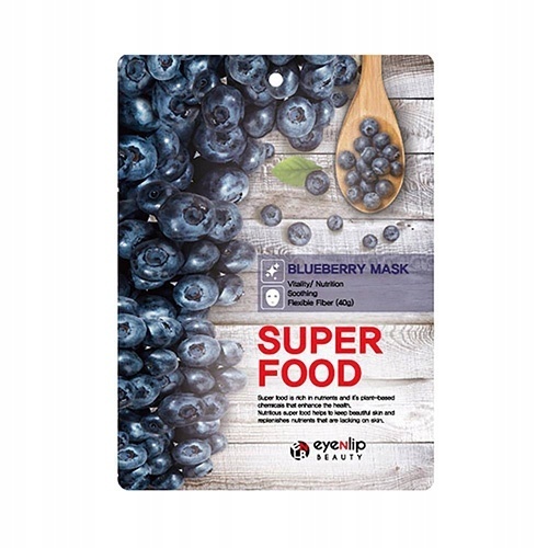 Maska w płachcie Eyenlip Superfood Bluberry zawiera ekstrakt z borówki, który nasyca skórę składnikami odżywczymi i dodaje energii sprawiając, że staje się ona aksamitnie gładka i oczyszczona. Bogactwo składników naturalnych działa rewitalizująco i łagodząco, utrzymując skórę w zdrowej kondycji.